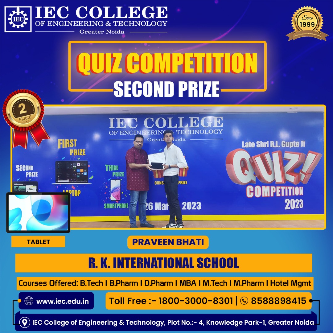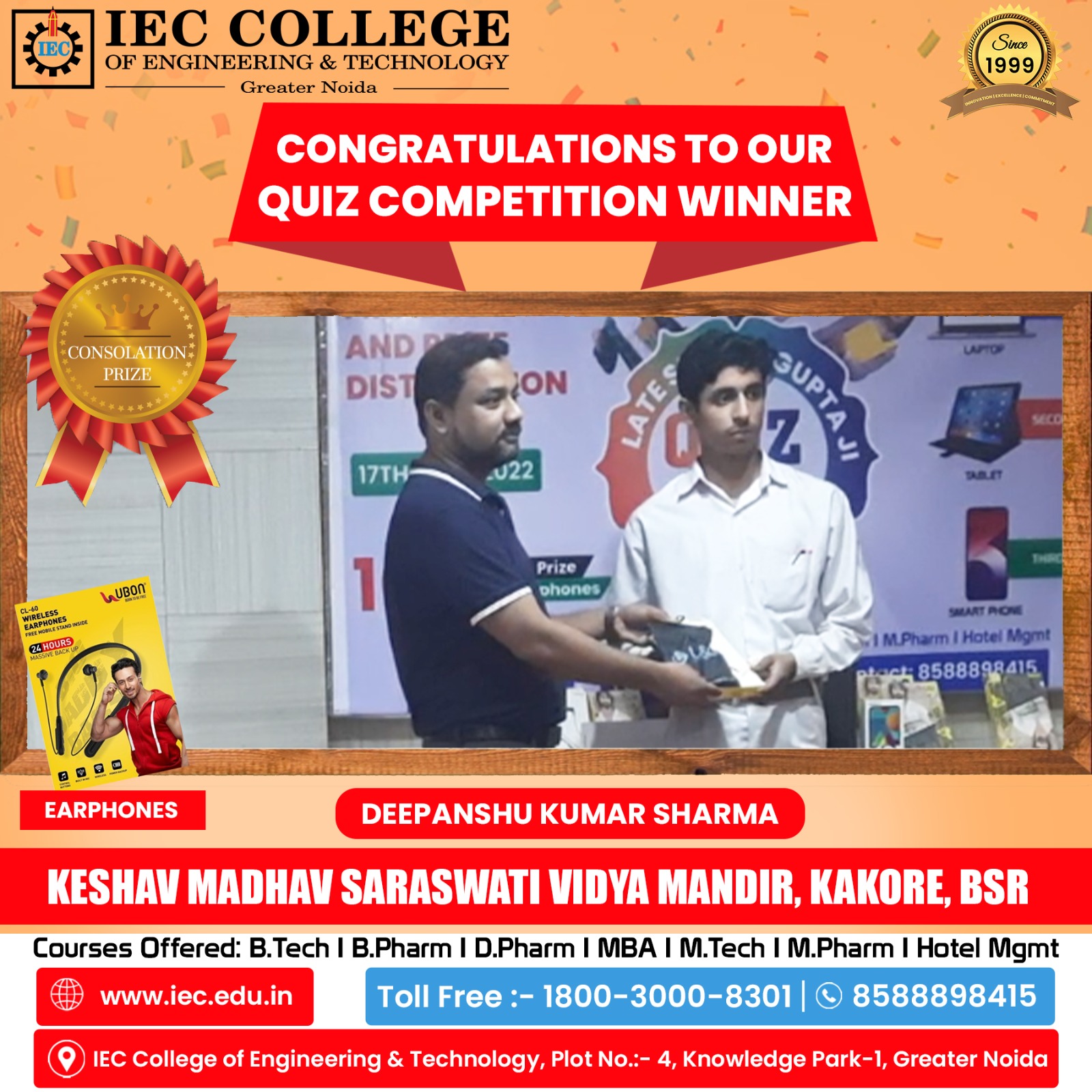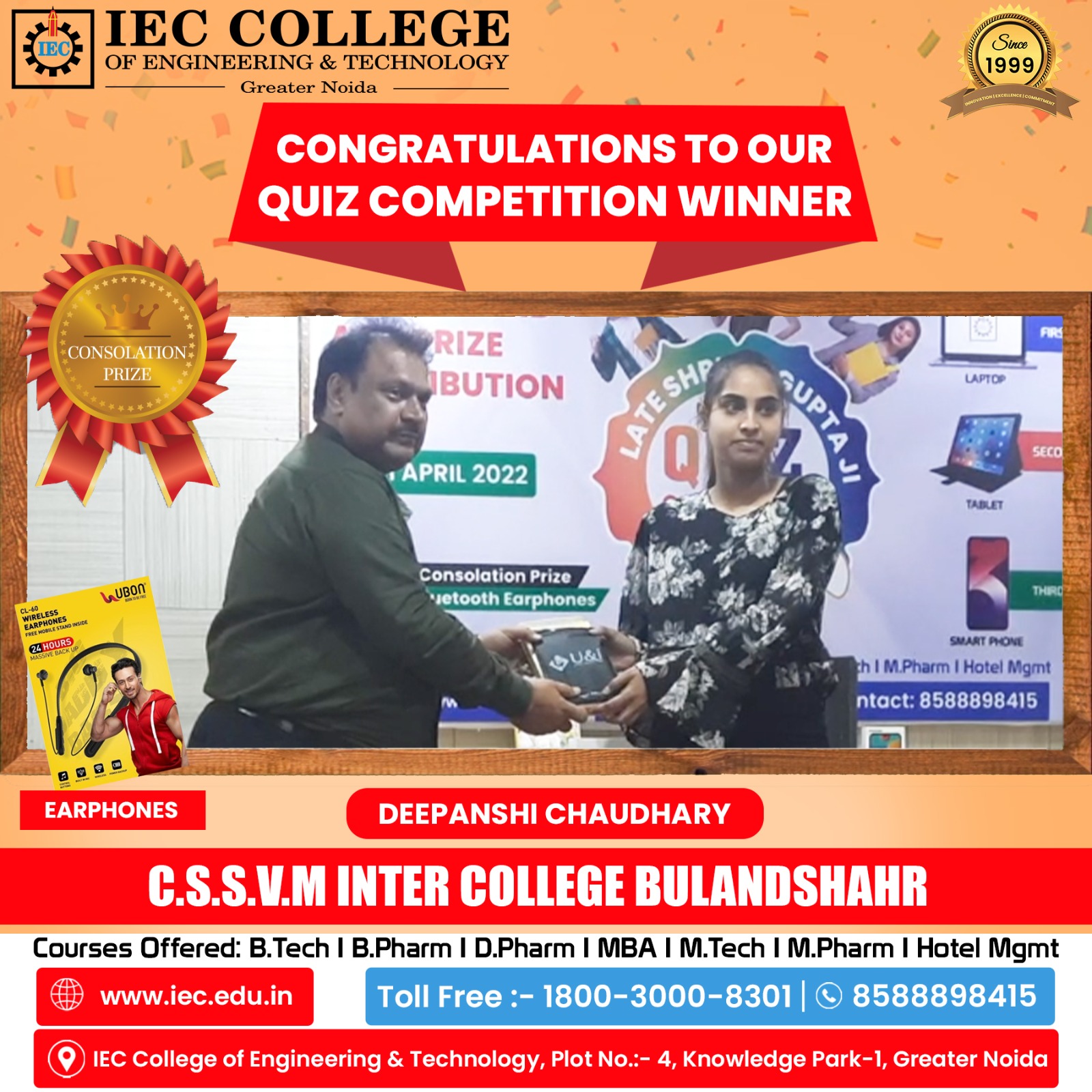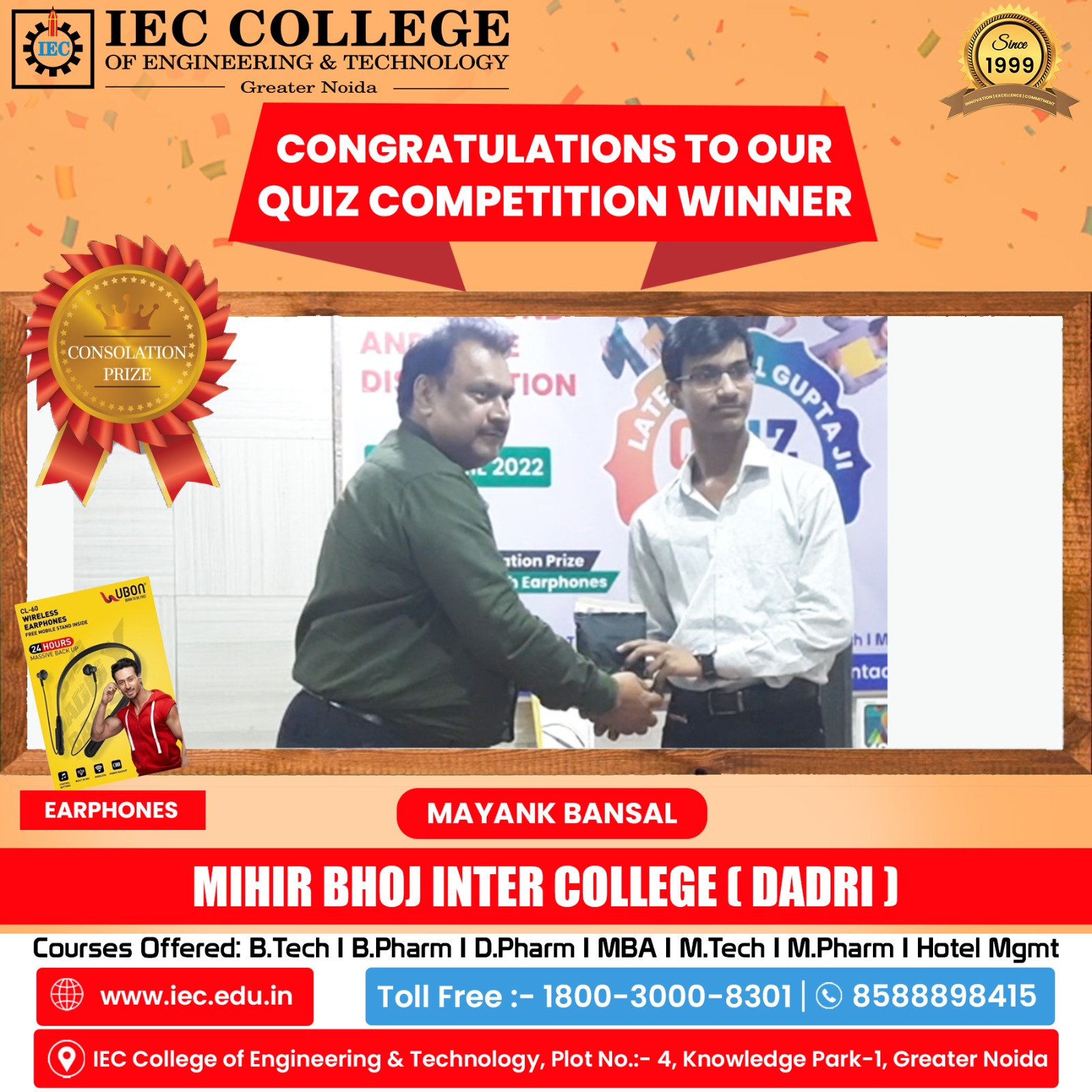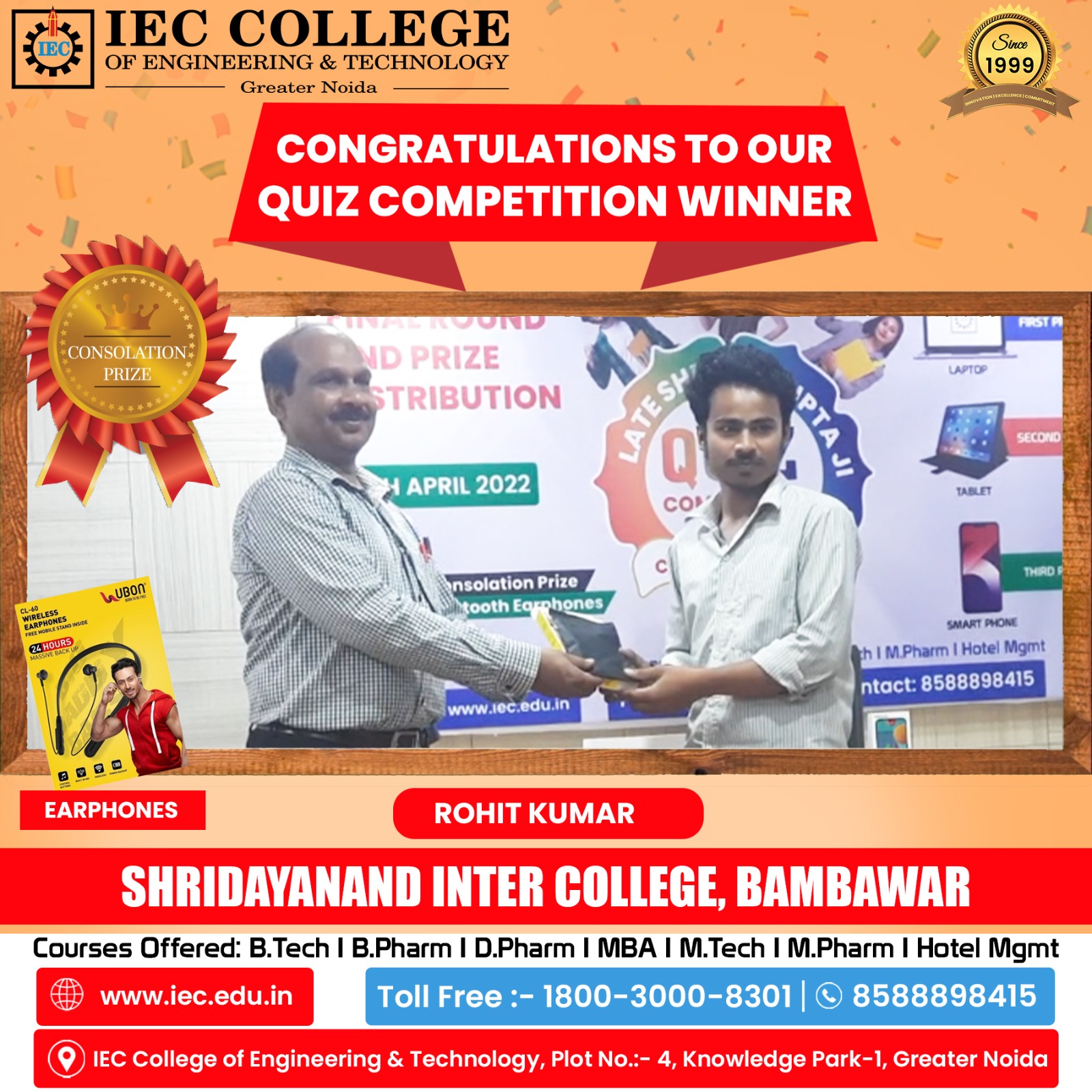 year, the institute intends to conduct the Quiz Completion for Intermediate UP Board /